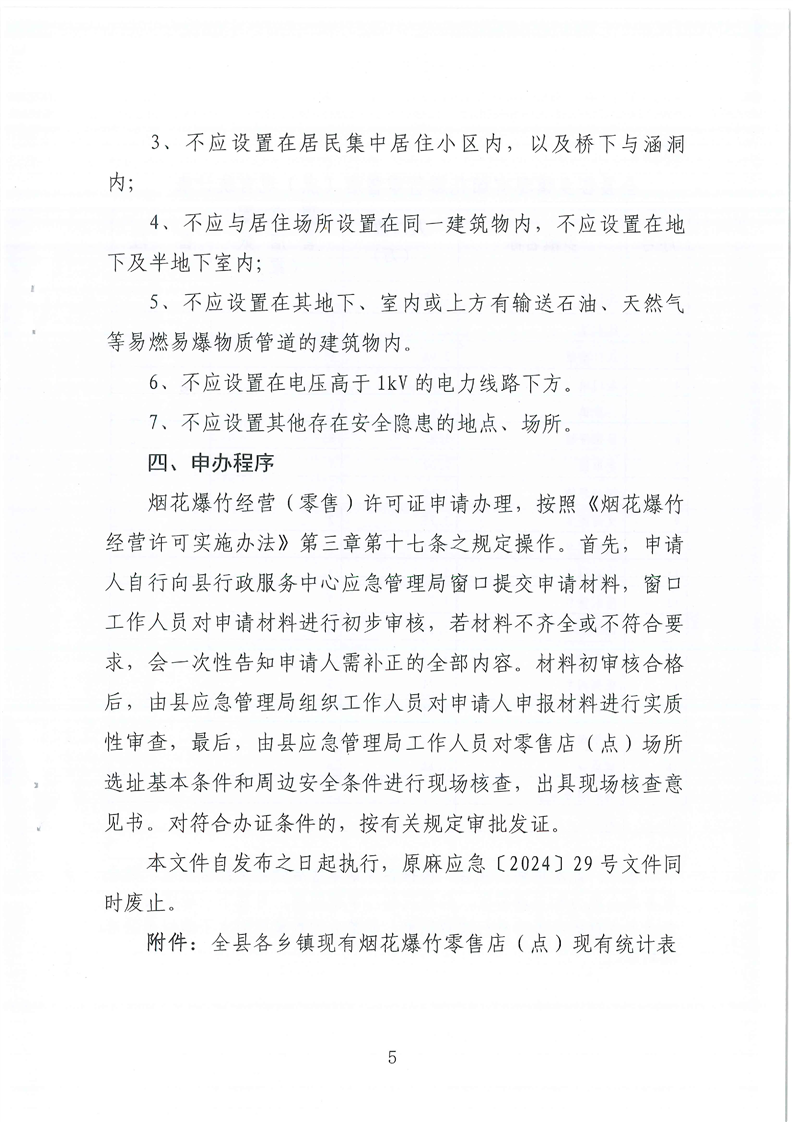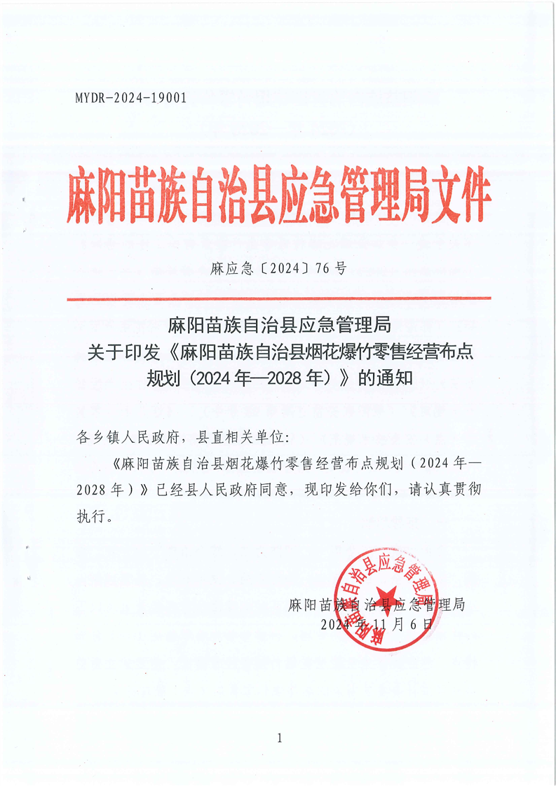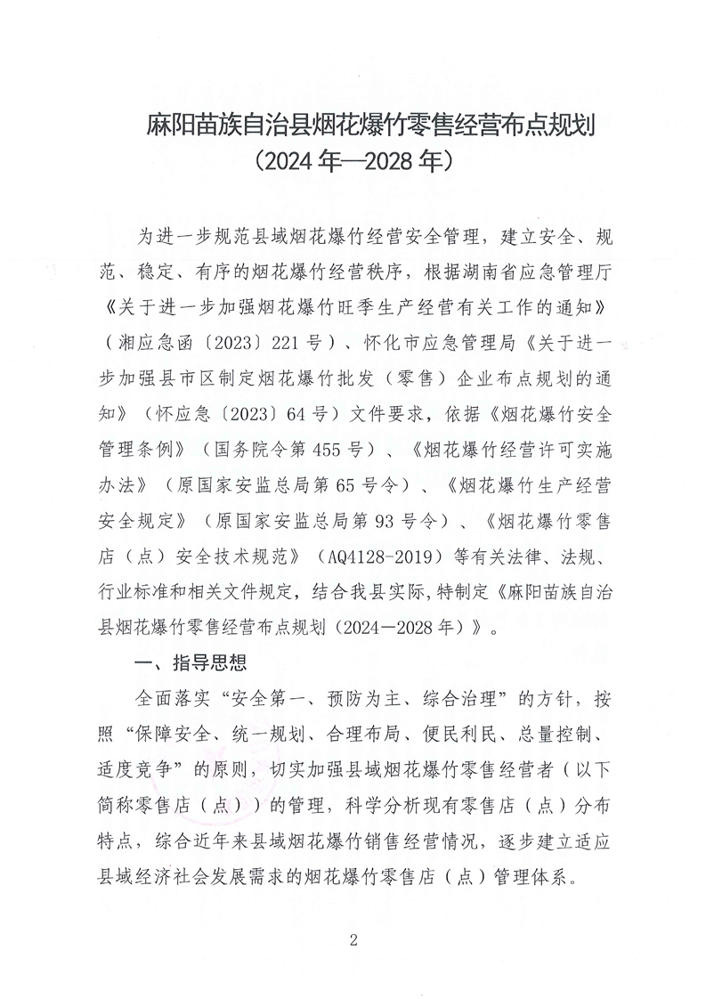 關於印發《麻陽苗族自治縣煙花爆竹零售經營布點規劃(2024年-2028年)》的通知 麻陽苗族自治縣人民政府 https://www.zwgsc.com 發布時間: 2024-11-06 10:21 【字體:大 小】 分享到 來源:麻陽縣應急管理局 作者: