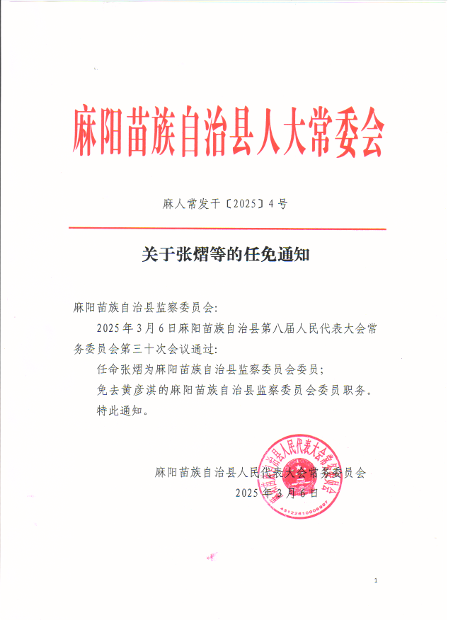 關於張熠等的任免通知