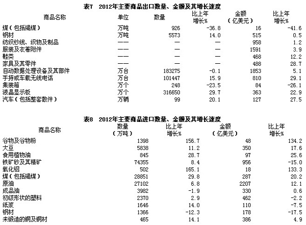 全年貨物進出口總額38668億美元,比上年增長6.2%。其中,出口20489億美元,增長7.9%;進口18178億美元,增長4.3%。進出口差額(出口減進口)2311億美元,比上年增加762億美元。