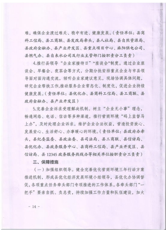 麻陽苗族自治縣人民政府辦公室關於印發《麻陽苗族自治縣優化營商環境三年行動計劃(2022-2024年)》的通知