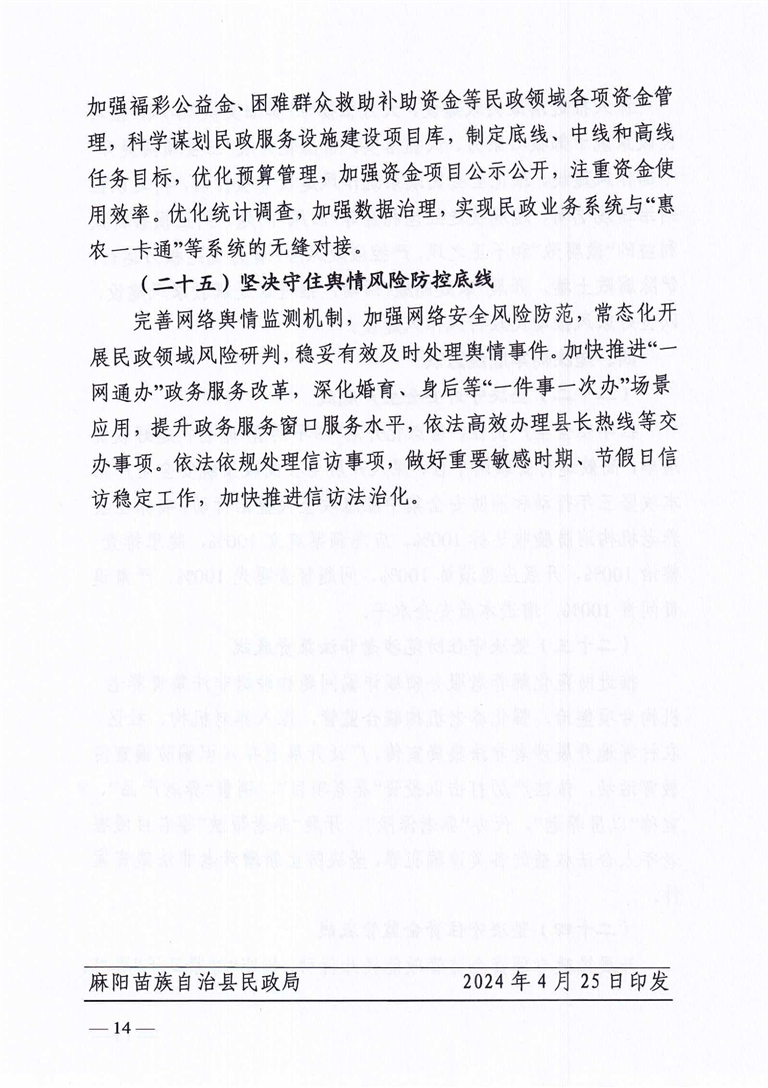 關於印發《2024年全縣民政工作要點》的通知 麻陽苗族自治縣人民政府 https://www.zwgsc.com 發布時間: 2024-05-10 14:10 【字體:大 小】 分享到 來源:麻陽縣民政局 作者: