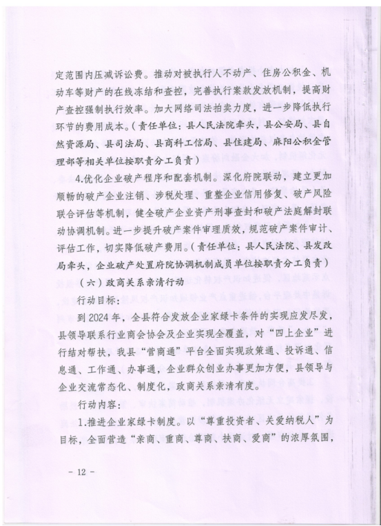 麻陽苗族自治縣人民政府辦公室關於印發《麻陽苗族自治縣優化營商環境三年行動計劃(2022-2024年)》的通知