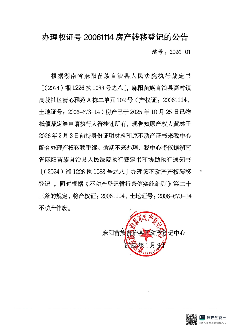 您的位置: 首頁 > 政務公開 > 政府信息公開目錄 > 部門信息公開目錄 > 縣自然資源局 > 不動產公告