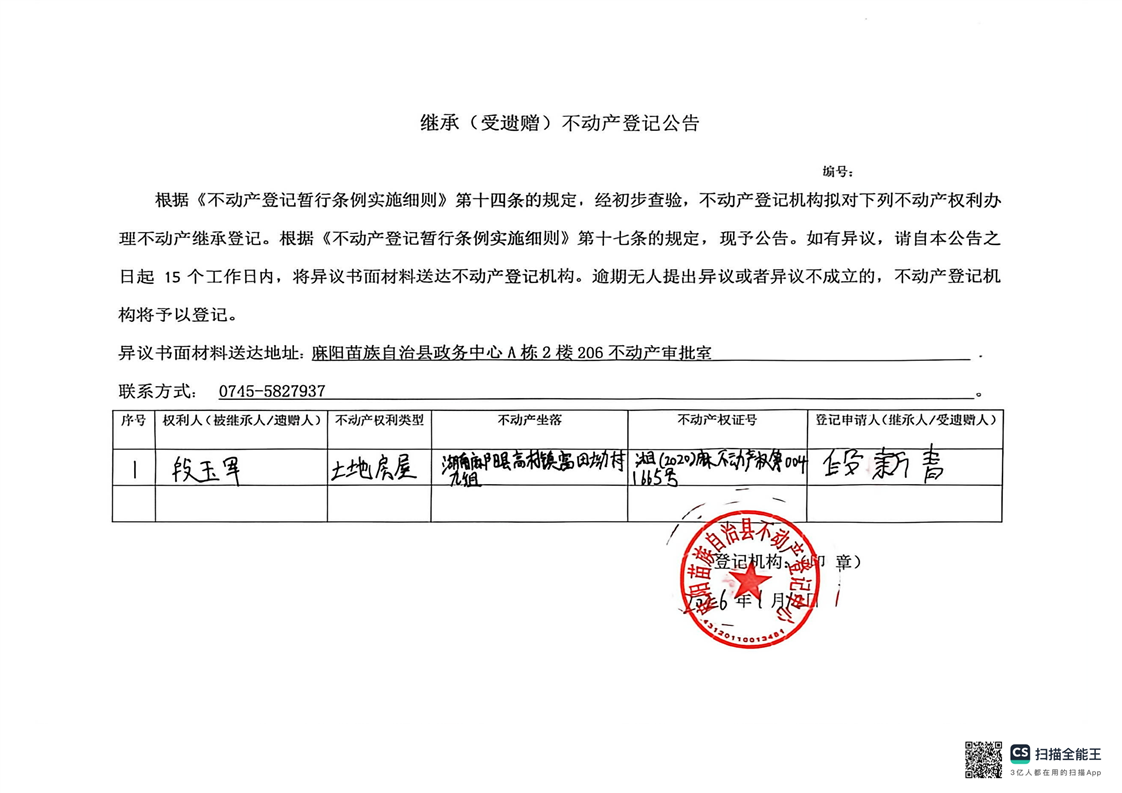 段新青繼承公示