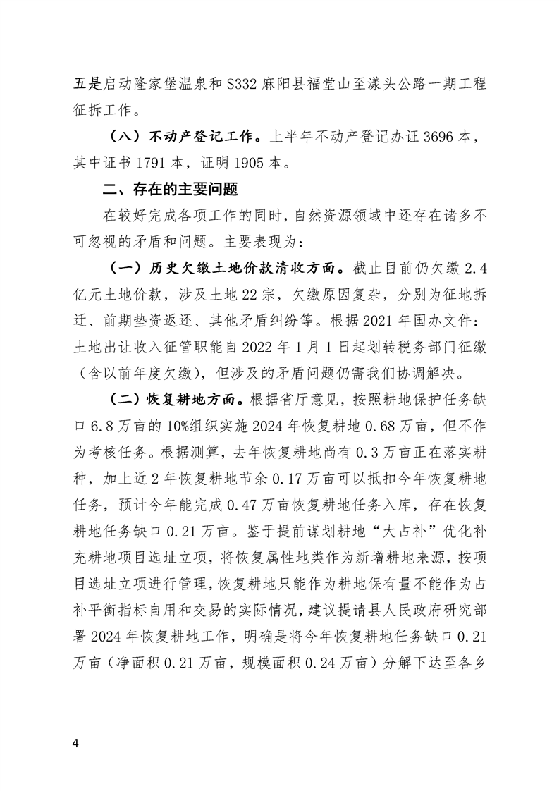 麻陽苗族自治縣自然資源局2024年上半年工作總結及下半年工作計劃