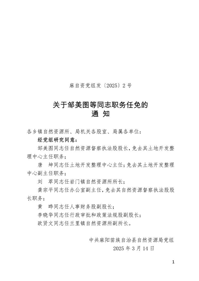 關於鄒美圖等同誌職務任免的通知