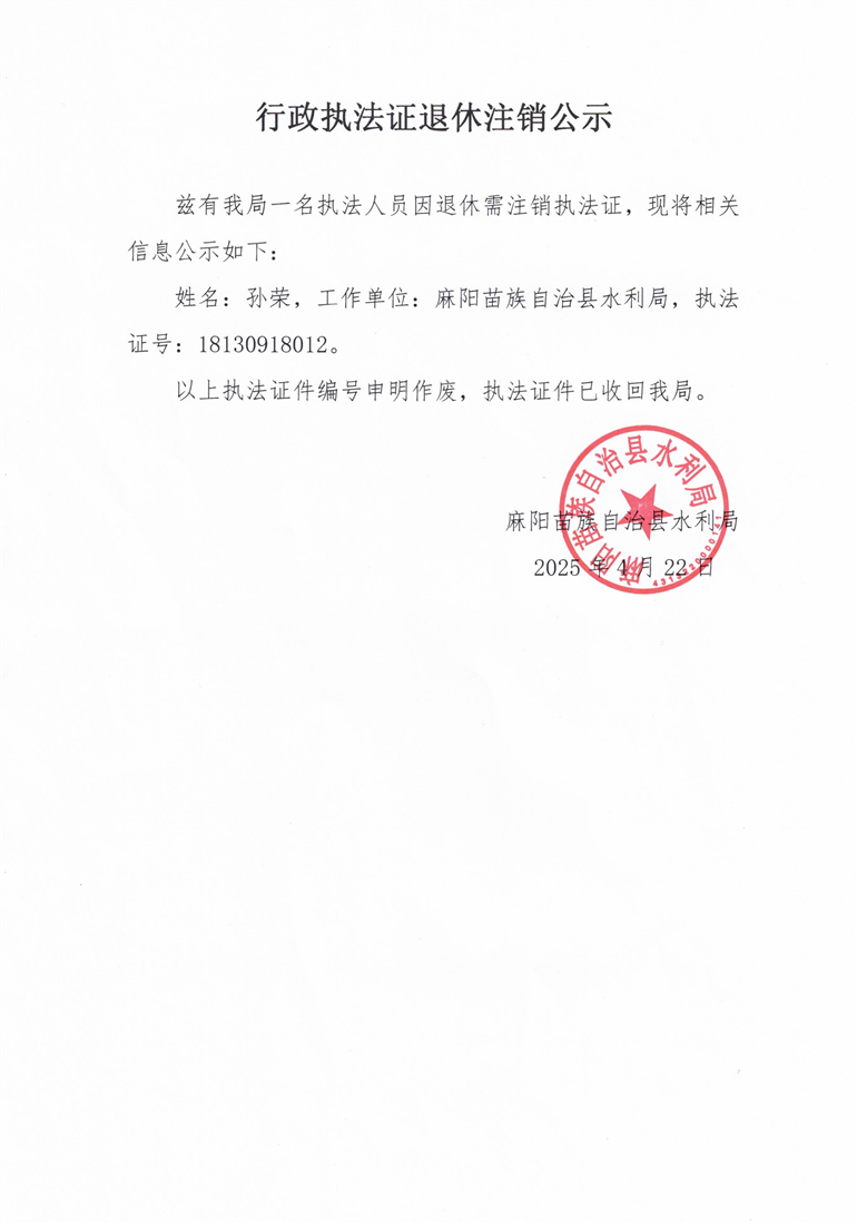 行政執法證退休注銷公示