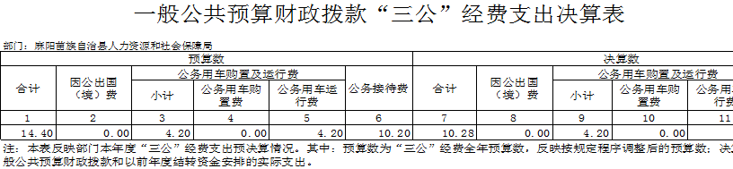 “三公”經費本單位僅指公務接待費和公務用車購置及運行維護費,其中公務用車購置及運行維護費,支出預算14.4萬元,決算為10.28萬元;公務接待費,支出預算10.2萬元,決算為6.08萬元。