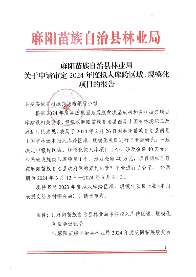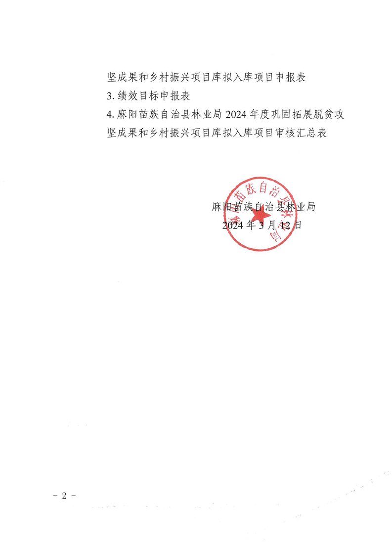 2024年度擬入庫跨區域、規模化項目情況公示 麻陽苗族自治縣人民政府 https://www.zwgsc.com 發布時間: 2024-03-12 09:53 【字體:大 小】 分享到 來源:麻陽縣林業局 作者: