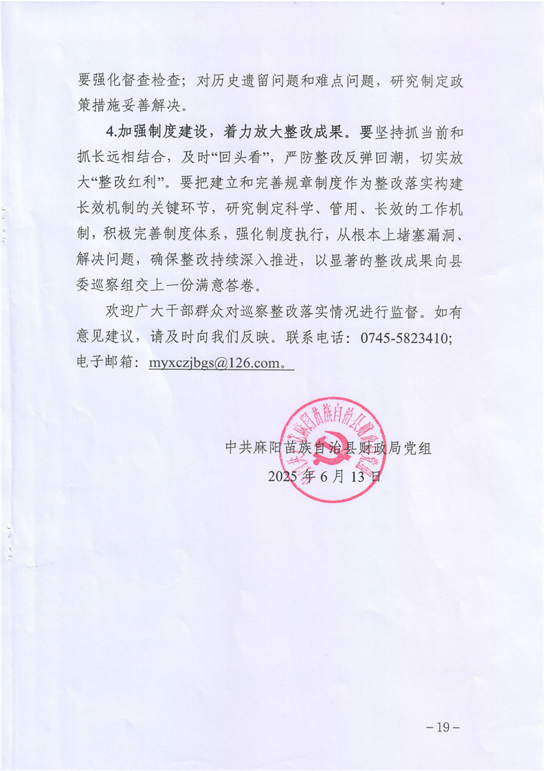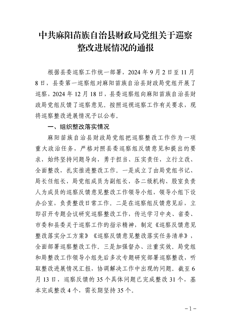 中共麻陽苗族自治縣財政局黨組關於巡察整改進展情況的通報 麻陽苗族自治縣人民政府 https://www.zwgsc.com 發布時間: 2025-06-13 16:24 【字體:大 小】 分享到 來源:麻陽縣財政局 作者: