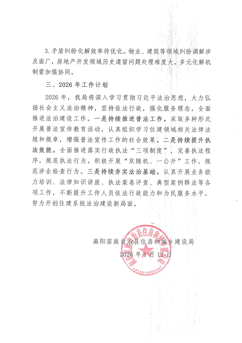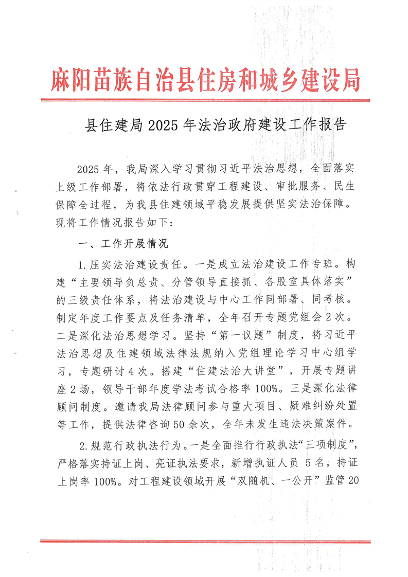 麻陽苗族自治縣住房和城鄉建設局關於2025年法治政府建設工作報告的公示