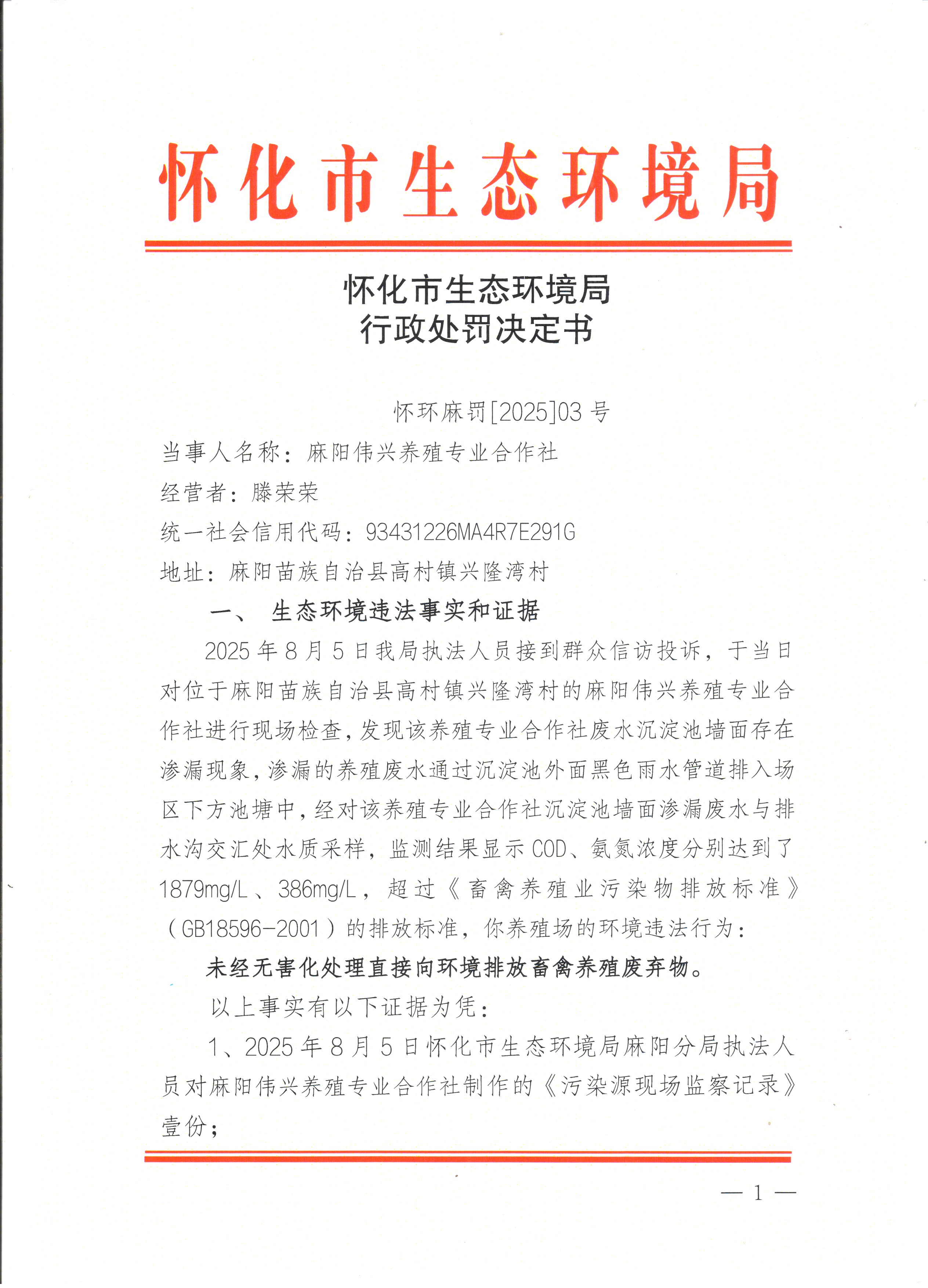 懷化市生態環境局行政處罰決定書 懷環麻罰〔2025〕03號 麻陽苗族自治縣人民政府 https://www.zwgsc.com 發布時間: 2025-09-11 15:45 【字體:大 小】 分享到 來源:市生態環境局麻陽分局 作者: