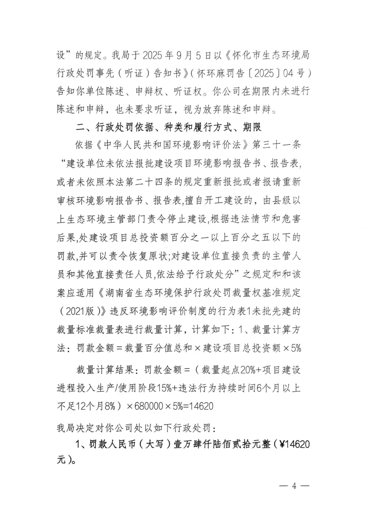 懷化市生態環境局行政處罰決定書 懷環麻罰〔2025〕04號