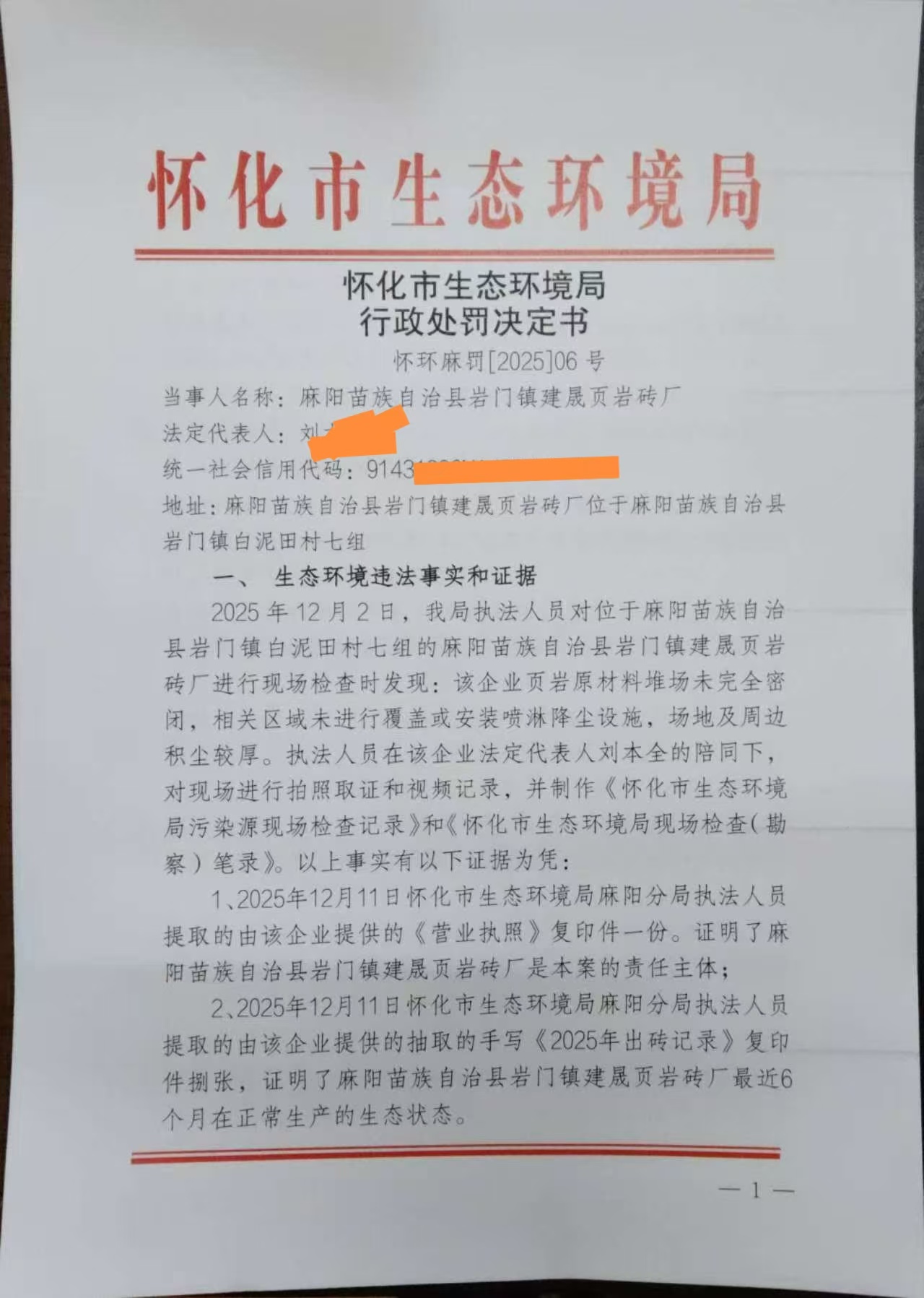 懷化市生態環境局行政處罰決定書 懷環麻罰〔2025〕06號 麻陽苗族自治縣人民政府 https://www.zwgsc.com 發布時間: 2025-12-23 09:17 【字體:大 小】 分享到 來源:市生態環境局麻陽分局 作者: