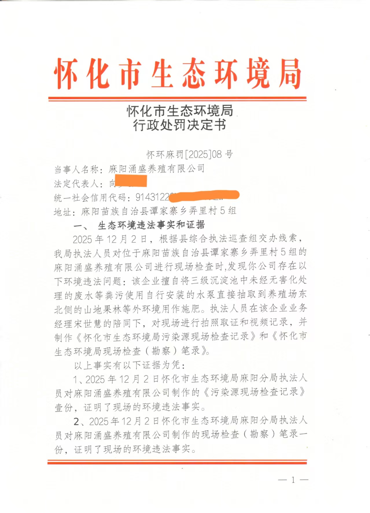 懷化市生態環境局行政處罰決定書 懷環麻罰〔2025〕08號 麻陽苗族自治縣人民政府 https://www.zwgsc.com 發布時間: 2025-12-26 15:02 【字體:大 小】 分享到 來源:市生態環境局麻陽分局 作者: