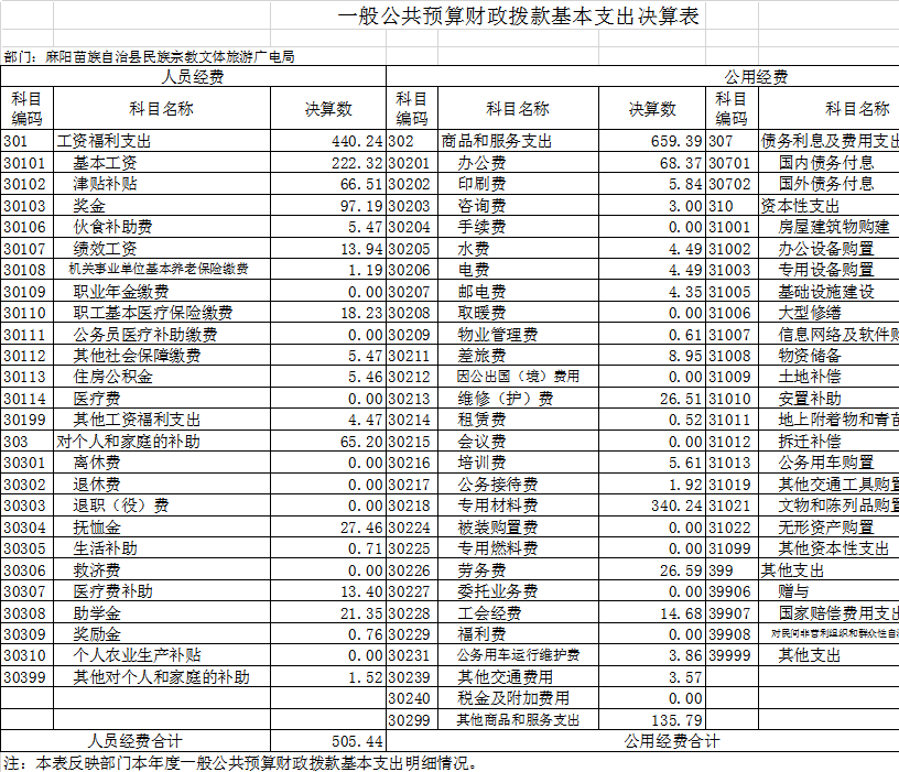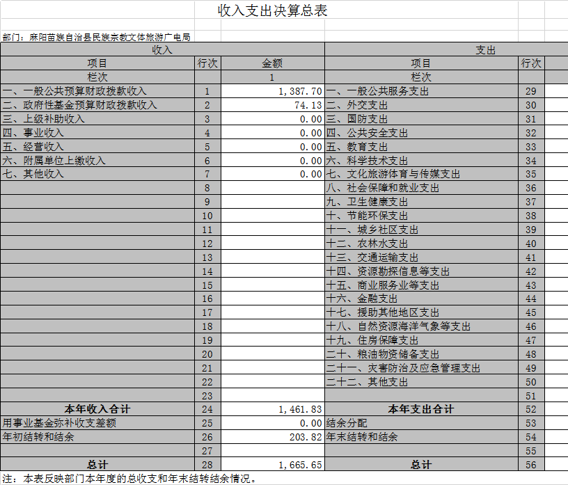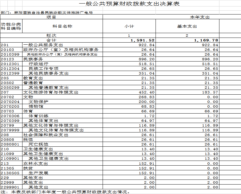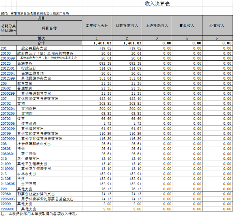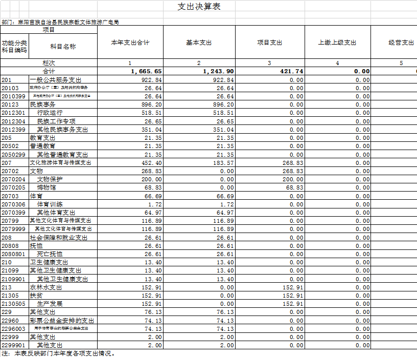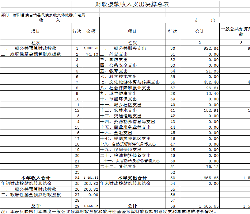 第二部分 麻陽苗族自治縣民族宗教文體旅遊廣電局2019年度部門決算表