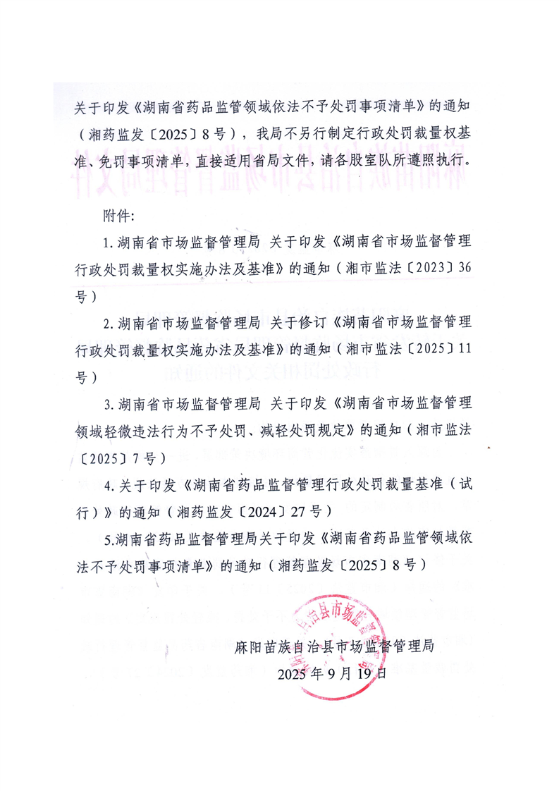 • 湖南省藥品監督管理局關於印發《湖南省藥品監管領域依法不予處罰事項清單》的通知.pdf