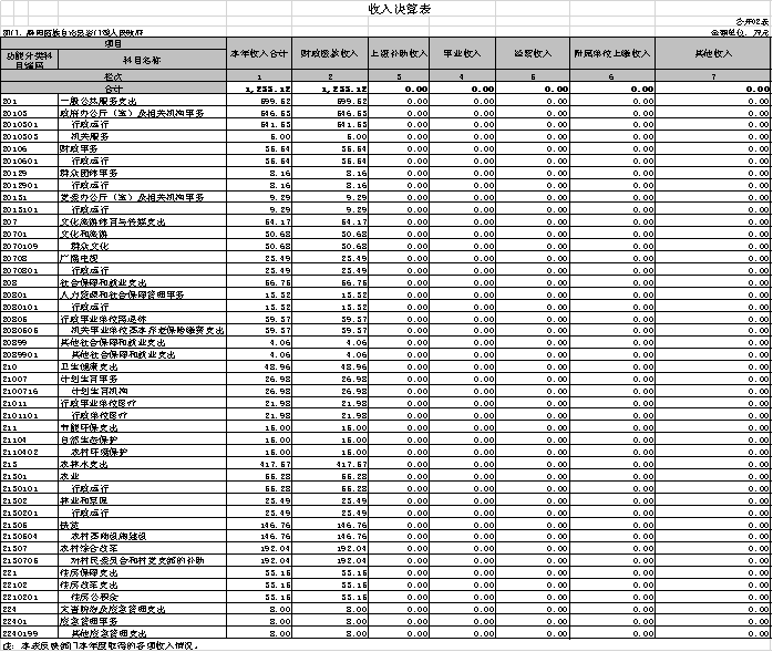 二、收入決算表