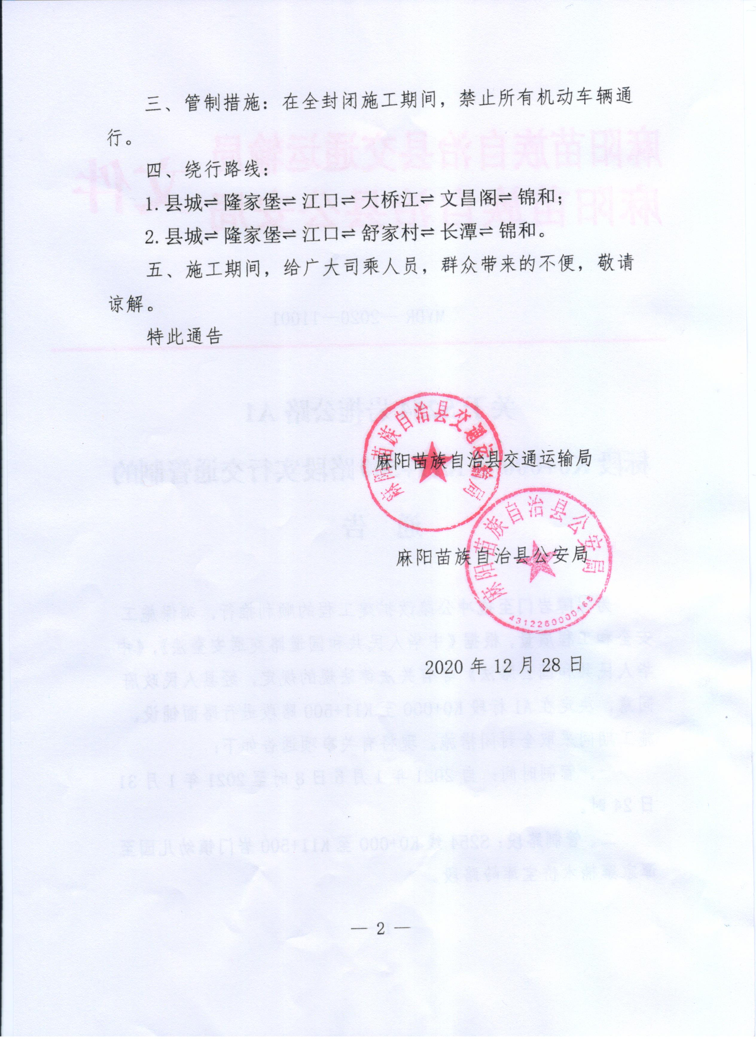 關於S254岩拖公路A1標段K0+000至K11+500路段實行交通管製的通告