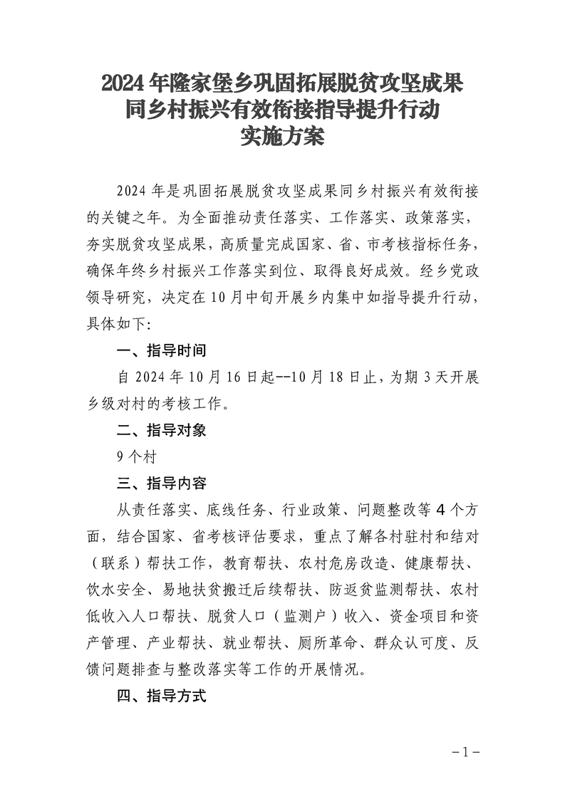 2024年隆家堡鄉鞏固拓展脫貧攻堅成果同鄉村振興有效銜接指導提升行動實施方案