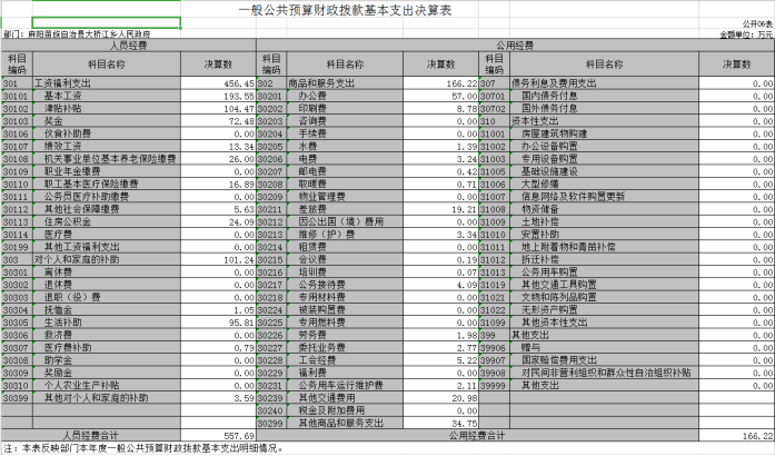 2、公用經費166.22萬元,占基本支出的22.96%,主要包括辦公費57萬元、印刷費8.78萬元、水費1.39萬元、電費3.24萬元、郵電費0.42萬元、取暖費0.71萬元、差旅費19.21萬元、維修(護)費3.34萬元、會議費0.19萬元、培訓費0.07萬元、公務接待費4.09萬元、勞務費1.98萬元、委托業務費2.77萬元、工會經費5.22萬元、公務用車運行維護費2.11萬元,其他交通費用20.98萬元,其他商品和服務支出34.75萬元。
