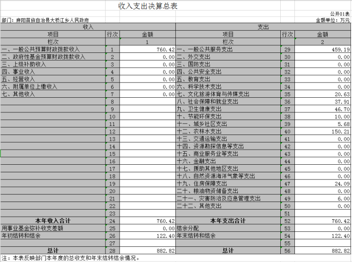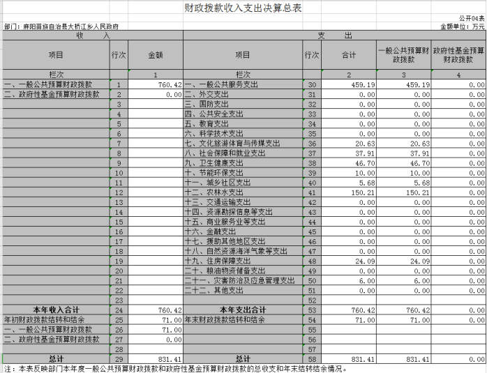 2019年度麻陽苗族自治縣大橋江鄉人民政府部門決算公開