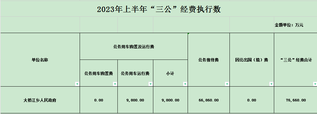 麻陽苗族自治縣大橋江鄉人民政府2023年上半年“三公”經費
