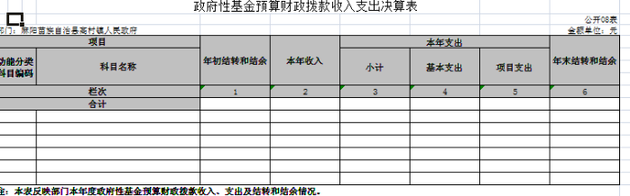 八、政府性基金預算財政撥款收入支出決算表