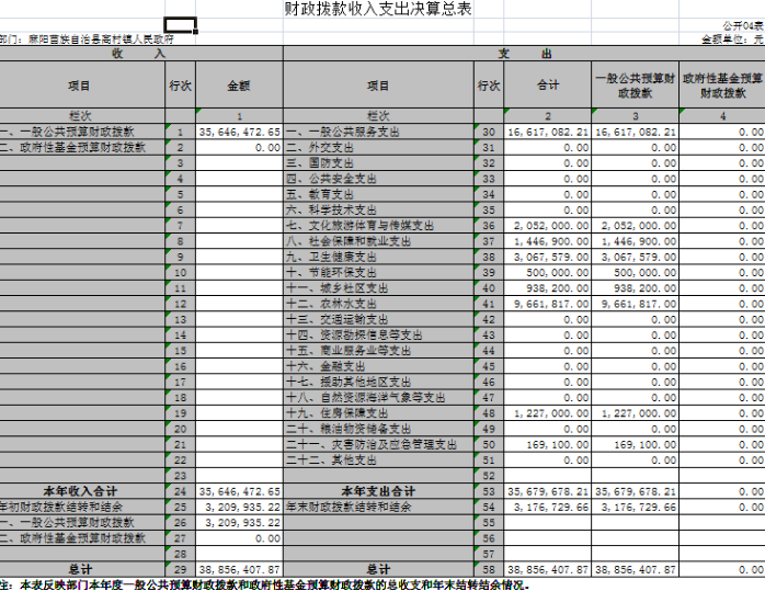 四、財政撥款收入支出決算總表