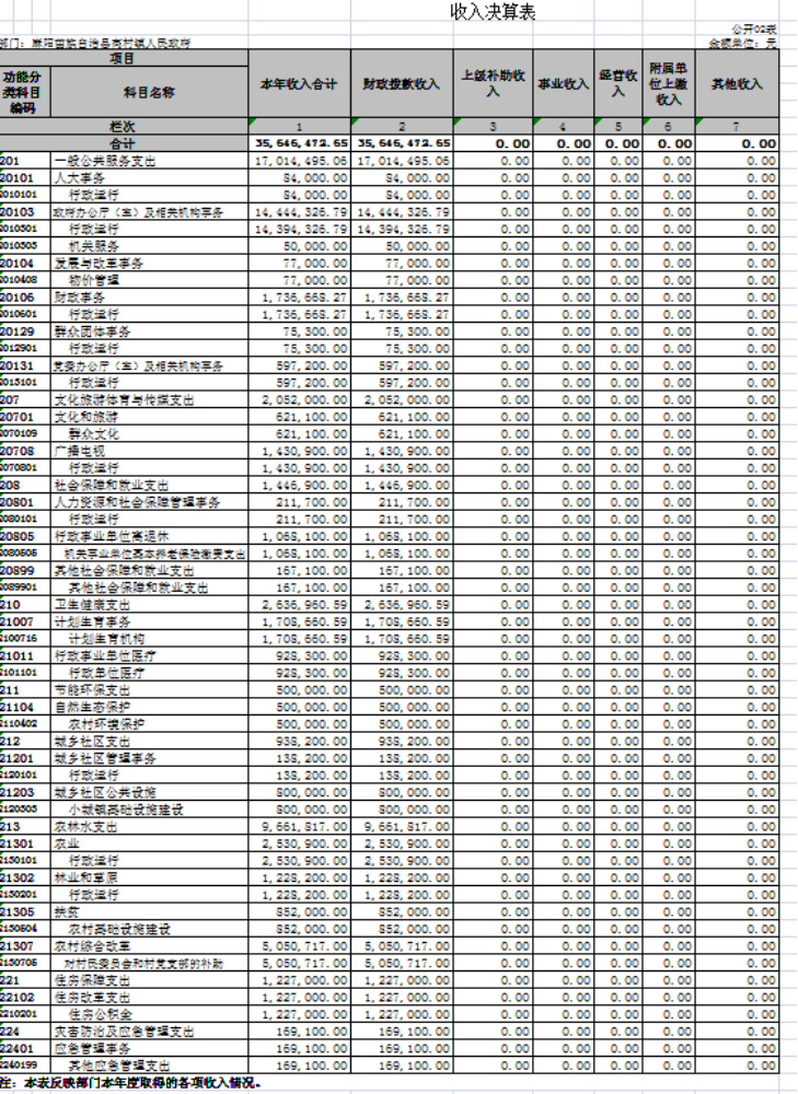 二、收入決算表