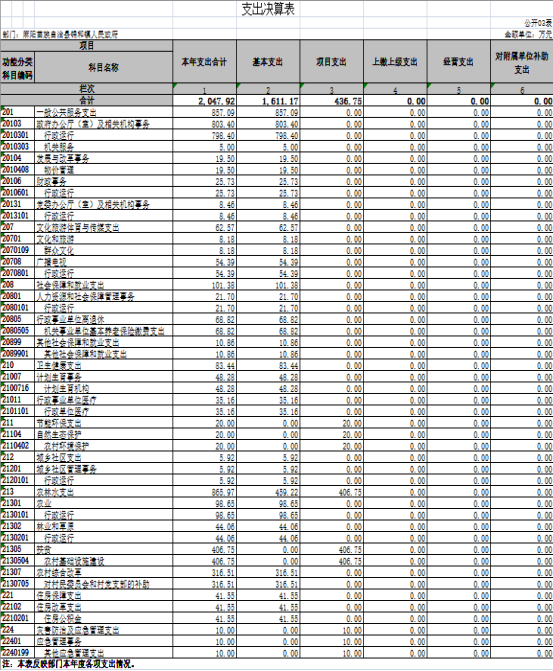 2019年度財政撥款支出年初預算數為857.57萬元,支出決算數為2047.92萬元,完成年初預算的238.8%,其中: