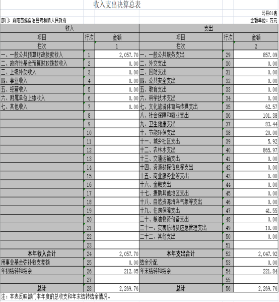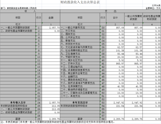 2019年度財政撥款支出2047.92萬元,主要用於以下方麵:一般公共服務支出857.09萬元,占41.85%;文化體育與傳媒支出62.57萬元,占3.06%;社會保障和就業支出為101.38萬元,占4.95%;衛生健康支出83.44萬元,占4.07%;節能環保支出20萬元,占0.98%;城鄉社區支出5.92萬元,占0.29%;農林水支出865.97萬元,占42.29%;災害防治及應急管理支出10萬元,占0.49%;住房保障支出41.55萬元,占2.03%。