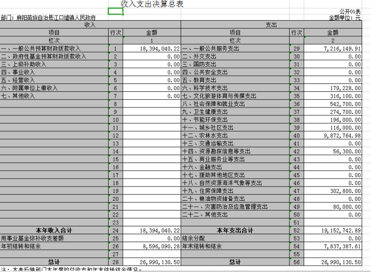江口墟鎮人民政府2019年部門決算匯總公開單位構成隻包括:江口墟鎮人民政府本級決算。