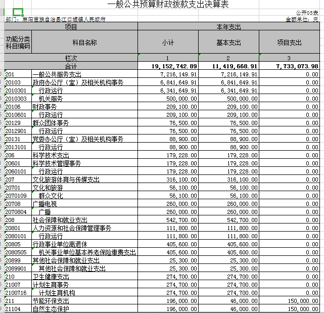 2019年決算一般公共預算財政撥款支出總計1915.27萬元。其中一般公共服務支出721.61萬元(其中基本支出為721.61萬元);科學技術支出17.92萬元;文化體育與傳媒支出31.61萬元;社會保障和就業支出54.27萬元;衛生健康支出27.47萬元;節能環保支出19.6萬元;城鄉社區支出11.6萬元;農林水支出987.28萬元(包括基本支出236.97萬元,項目支出750.31萬元);資源勘探信息等支出5.63萬元;住房保障支出30.28萬元;災害防治及應急管理支出8萬元。2018年決算一般公共預算財政撥款支出總計1537.61萬元。其中一般公共服務支出1256.29萬元(包括基本支出641.95萬元,項目支出614.35萬元);公共安全支出0.4萬元;文化體育與傳媒支出6.39萬元;醫療衛生與計劃生育支出22.31萬元;節能環保支出15萬元;城鄉社區支出10.83萬元;農林水支出186.22萬元;資源勘探信息等支出13.09萬元;住房保障支出27.08萬元
