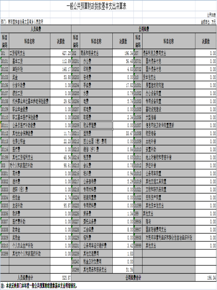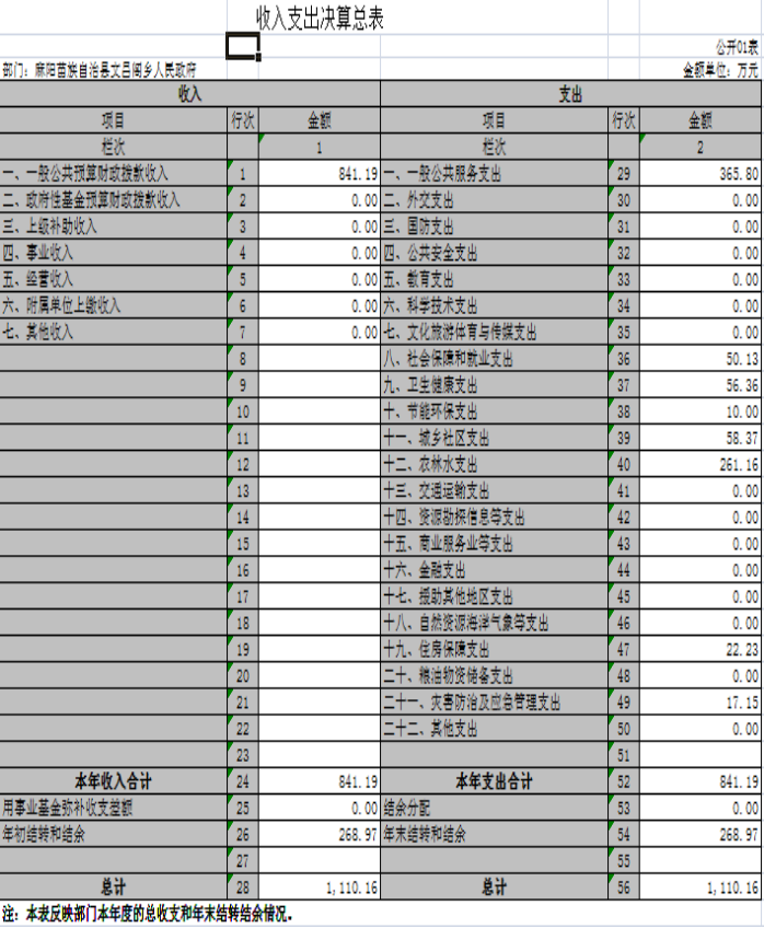 2019年度麻陽苗族自治縣文昌閣鄉人民政府部門決算公開