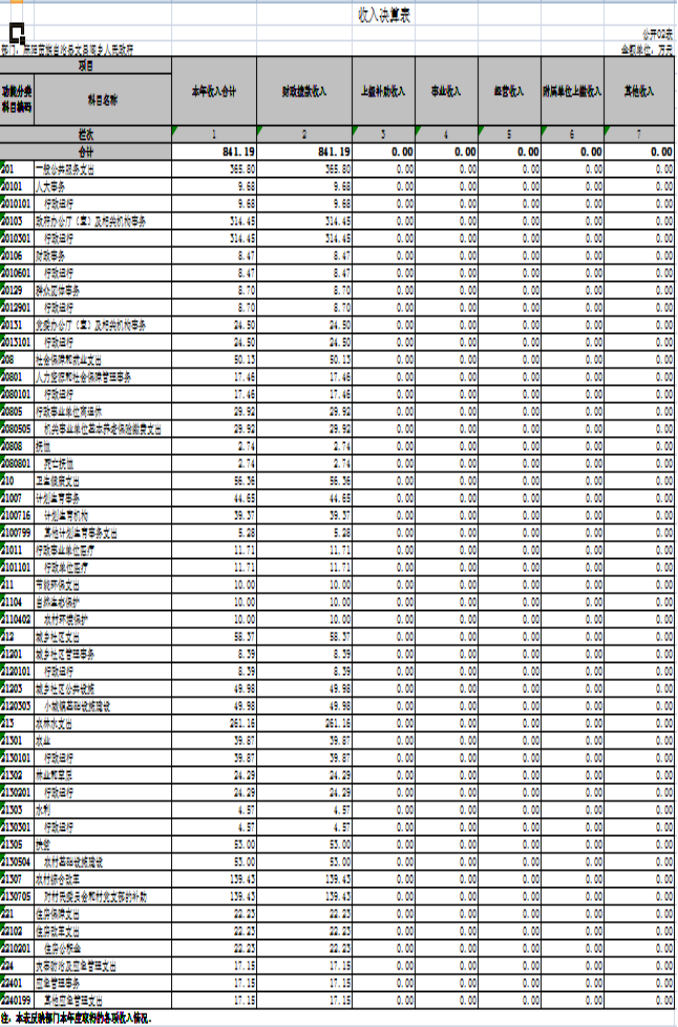 二、收入決算表