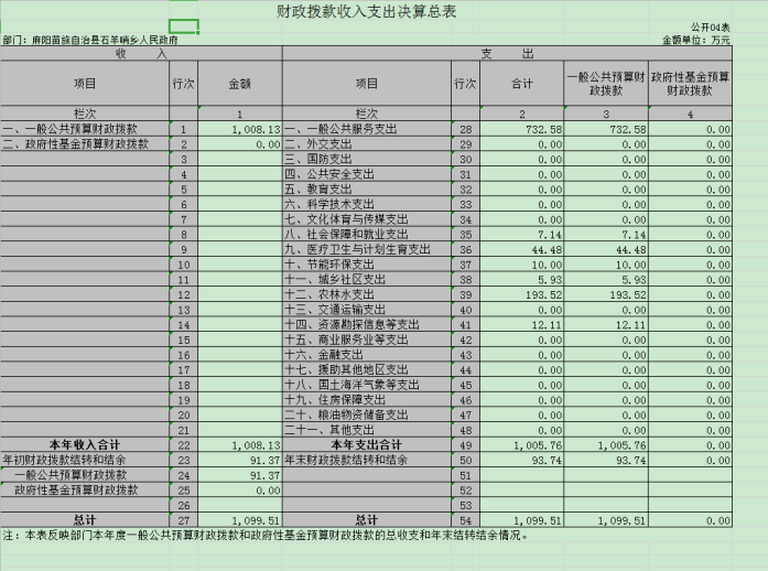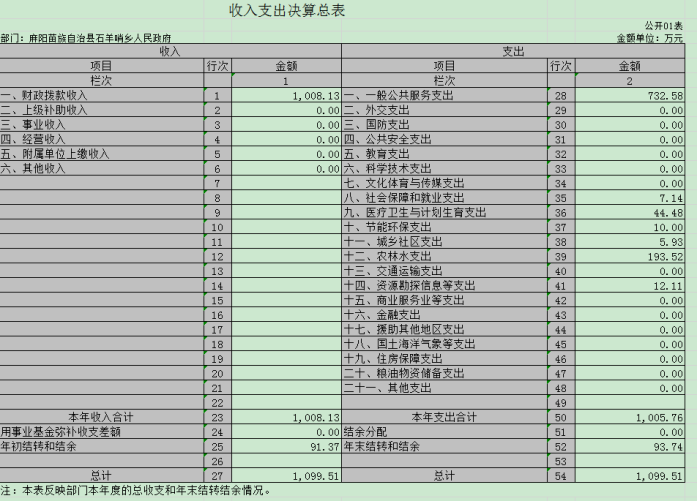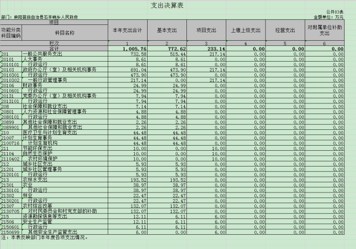 2019年度麻陽苗族自治縣石羊哨鄉人民政府部門決算公開