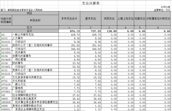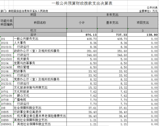 2019年度麻陽苗族自治縣和平溪鄉人民政府部門決算公開