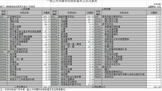 2019年,我單位嚴格落實省委、省政府關於黨政機關厲行節約的有關要求,既有效保障機關運轉,又堅決製止鋪張浪費,切實規範公務消費行為,努力降低行政成本,不斷優化支出結構。2019年一般公共預算財政撥款收入850.43萬元,上年度結轉和結餘64.86萬元,收入總計915.29萬元;實際支出915.29萬元,其中:一般公共服務支出為408.70萬元,文化旅遊體育與傳媒支出為15.32萬元,社會保障和就業支出為37.61萬元,衛生健康支出為43.97萬元,節能環保支出為10.00萬元,城鄉社區支出為4.91萬元,農林水支出為325.01萬元,住房保障支出為24.62萬元,災害防治及應急管理支出為6萬元。年末結轉和結餘支出為39.15萬元。