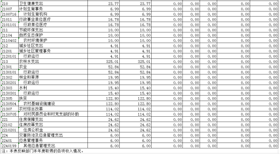 2019年度一般公共預算財政撥款支出915.29萬元,與上年相比,支出減少70.84萬元,減少7.18%,主要原因是積極響應中央節約政策。其中一般公共服務支出為408.70萬元,文化旅遊體育與傳媒支出為15.32萬元,社會保障和就業支出為37.61萬元,衛生健康支出為43.97萬元,節能環保支出為10.00萬元,城鄉社區支出為4.91萬元,農林水支出為325.01萬元,住房保障支出為24.62萬元,災害防治及應急管理支出為6萬元。年末財政撥款結轉和結餘39.15萬元。