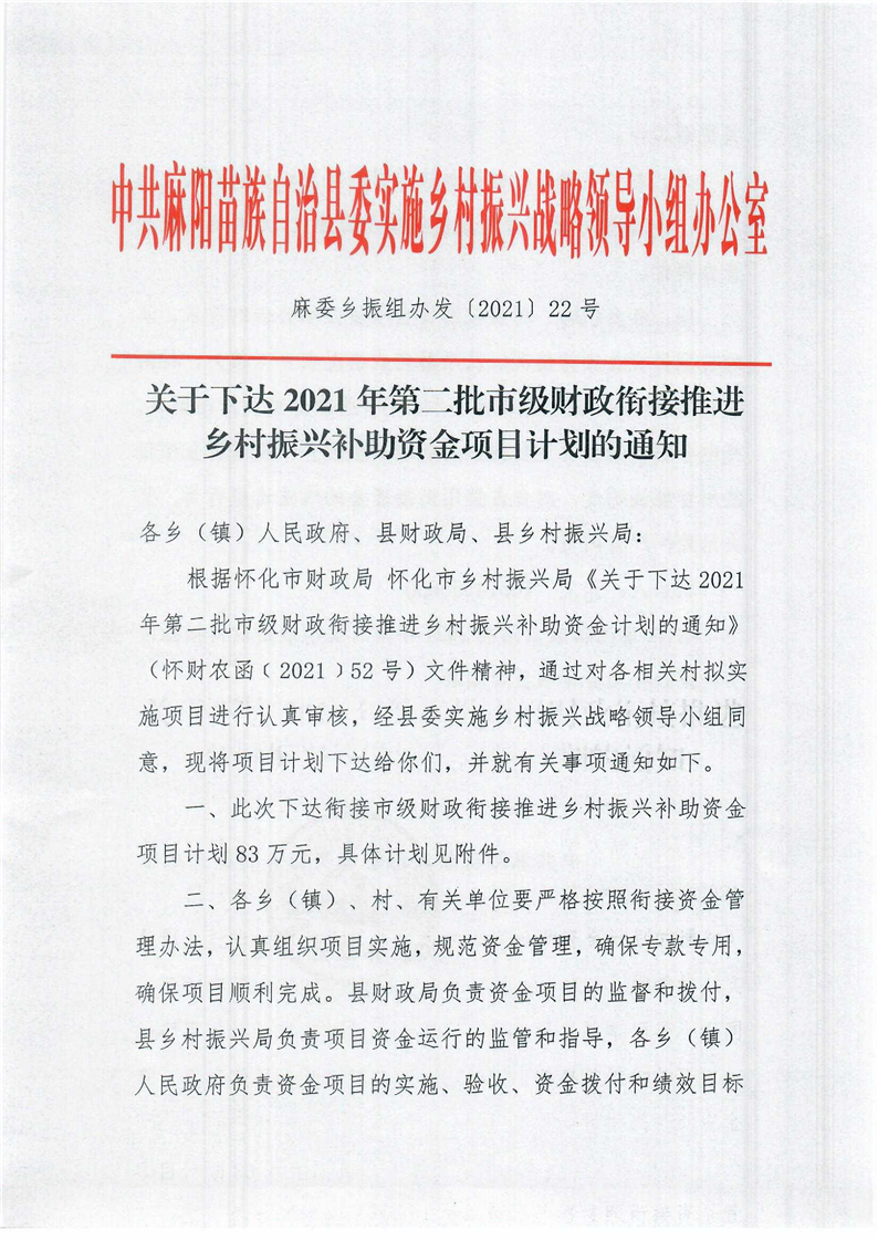 關於下達2021年第二批市級財政銜接推進鄉村振興補助資金項目計劃的通知