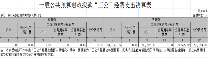 七、一般公共預算財政撥款“三公”經費支出決算表