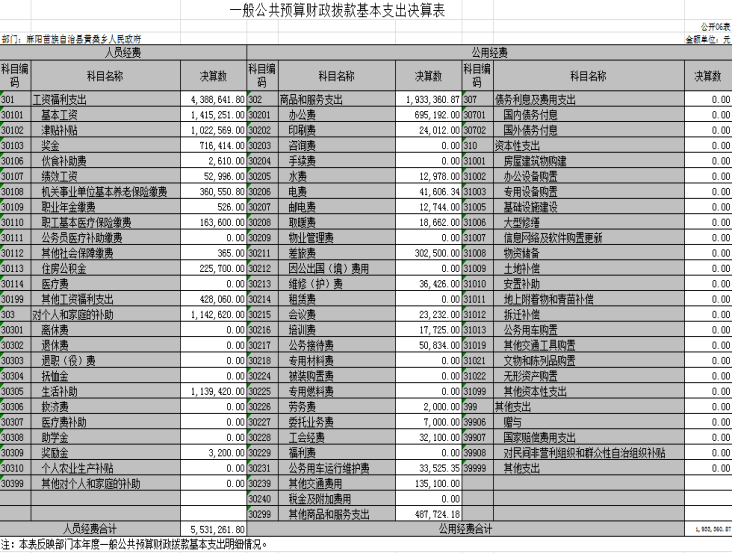 六、一般公共預算財政撥款基本支出決算表
