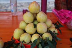 金秋梨,果大,外觀金黃、晶瑩透亮,肉質白、脆、嫩、細、汁多味甜,耐貯藏