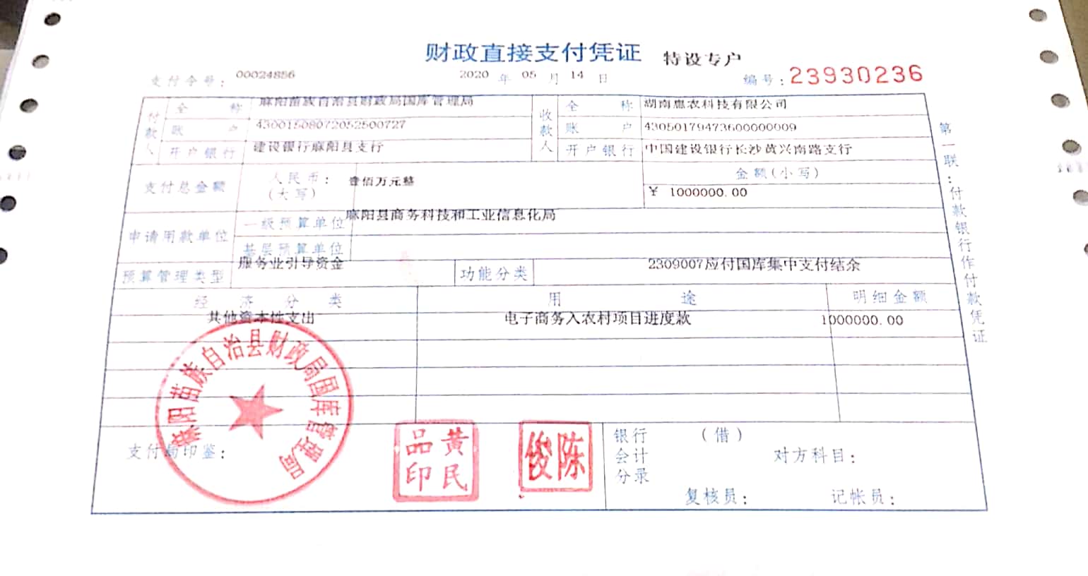 麻陽苗族自治縣電子商務進農村綜合示範項目中央財政資金撥付憑證 麻陽苗族自治縣人民政府 https://www.zwgsc.com 發布時間: 2020-05-14 17:35 【字體:大 小】 分享到 來源:麻陽縣商務科技和工業信息化局 作者: