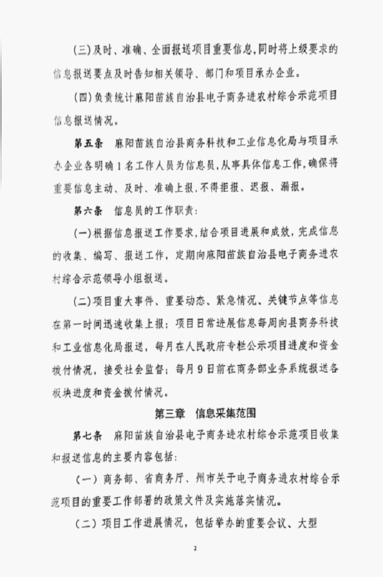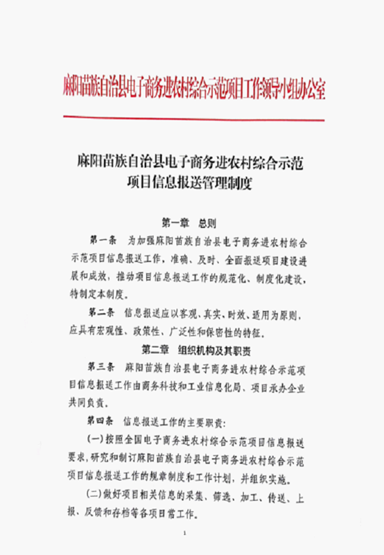 麻陽苗族自治縣電子商務進農村綜合示範項目信息報送管理製度