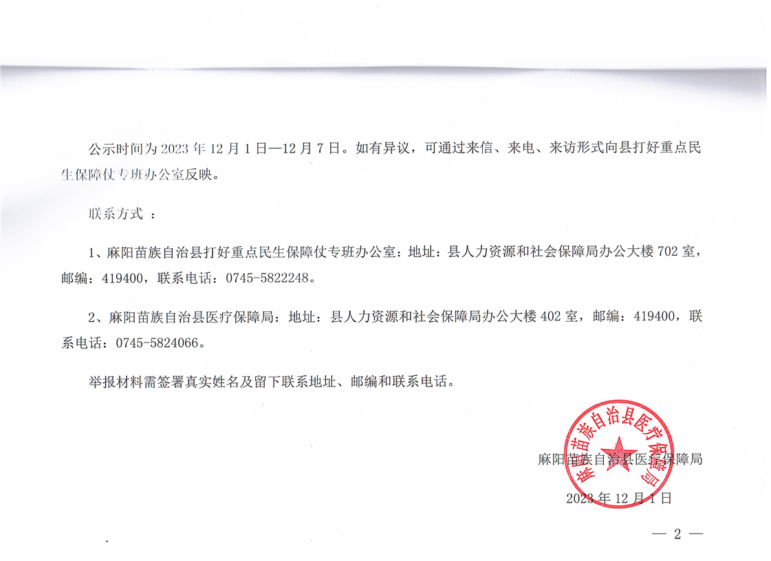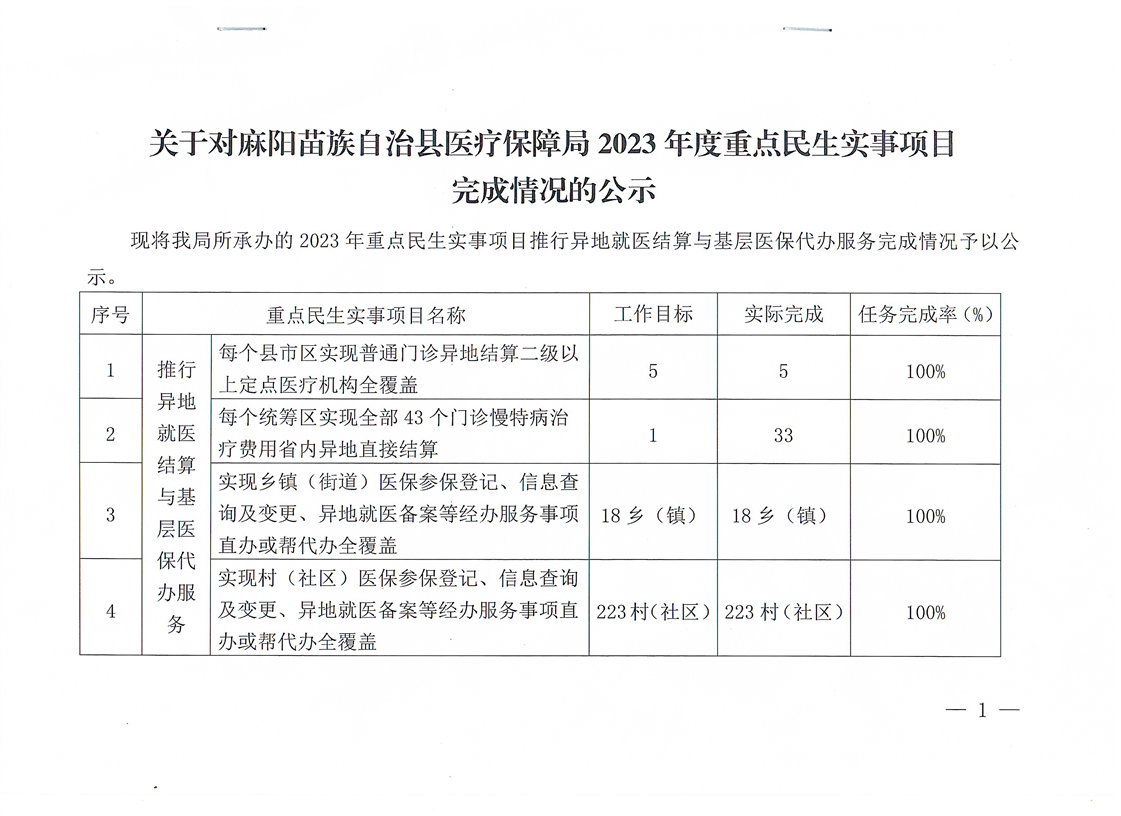 關於對麻陽苗族自治縣醫療保障局2023年度重點民生實事項目完成情況的公示