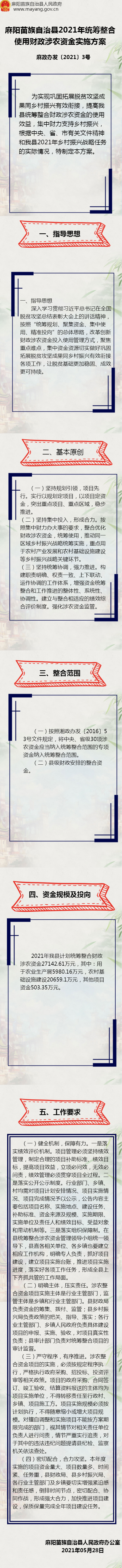 圖解:麻陽苗族自治縣2021年統籌整合財政涉農資金實施方案