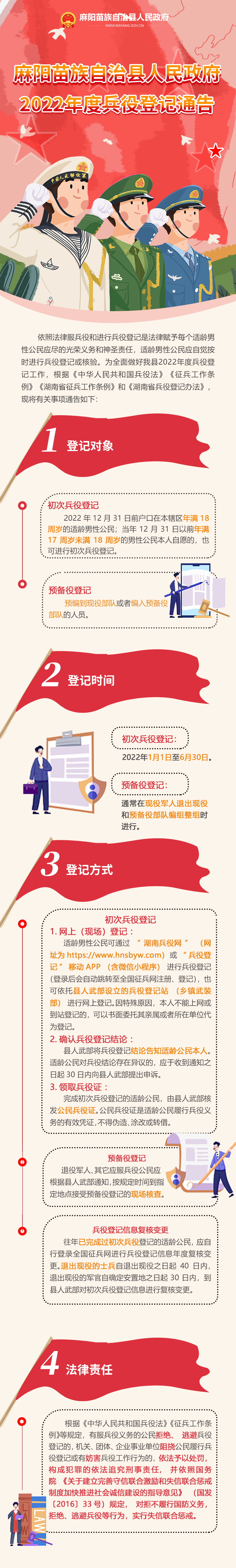 圖解:麻陽苗族自治縣人民政府2022年度兵役登記通告
