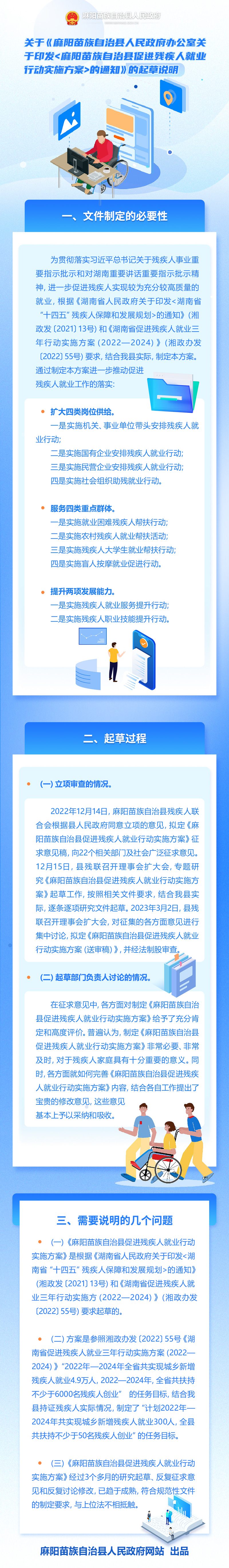 • 關於《麻陽苗族自治縣人民政府辦公室關於印發<麻陽苗族自治縣促進殘疾人就業行動實施方案>的通知》的起草說明